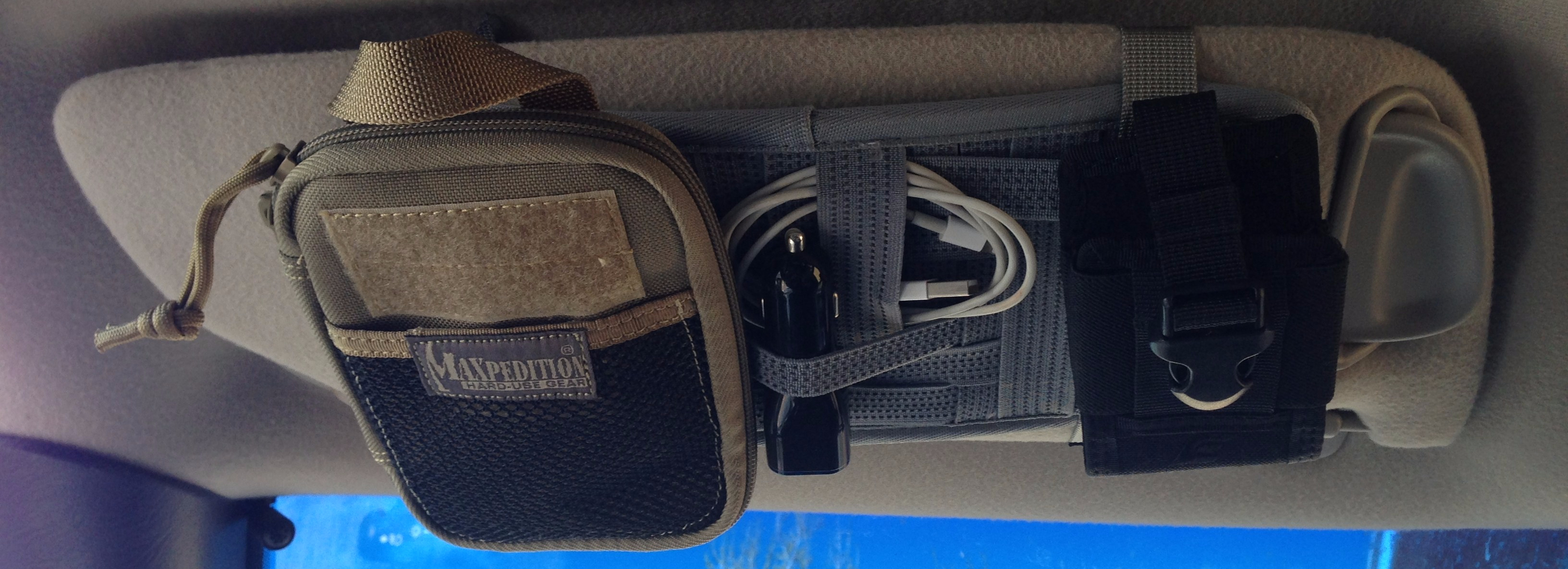 I found the Cocoon Grid-it panels on Amazon a few weeks ago and couldn’t get them out of my head. It wasn’t a product that I needed, of course, but it just seemed really handy. What I came up with was a visor panel using the following components: