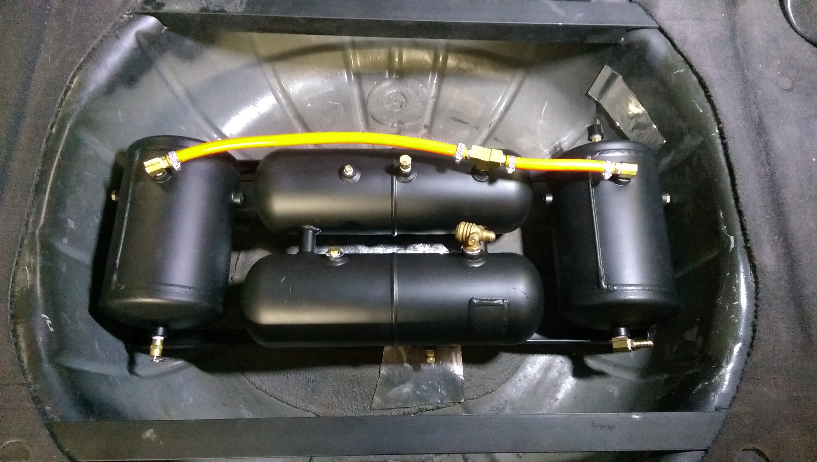 Anyway, if you wheel, you’re eventually gonna get bigger tires. And bigger tires take longer to fill, so you need a bigger compressor, etc, etc, etc… I decided on a four gallon setup, dictated as much by the room I had available in my spare tire compartment as by the need for a lot of volume.