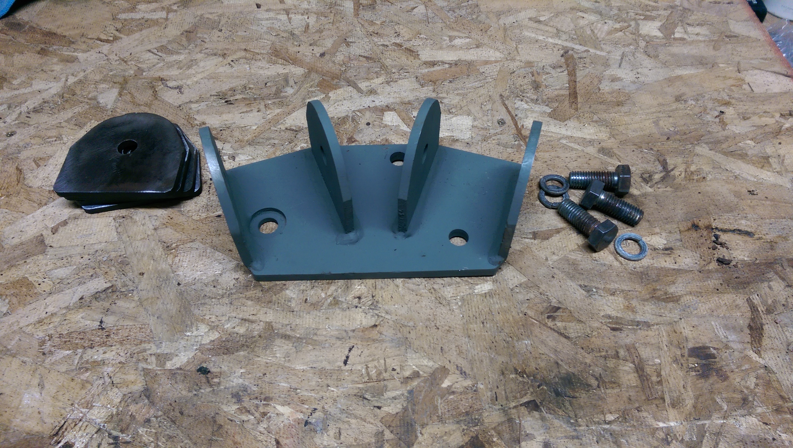 Here’s a fully completed bracket (passenger side, I think). I like this picture because it shows what I made, and what it came from. Before I got a hold of it, this was just bare flatbar. Now it’s part of my Jeep. Shit’s dope, yo.