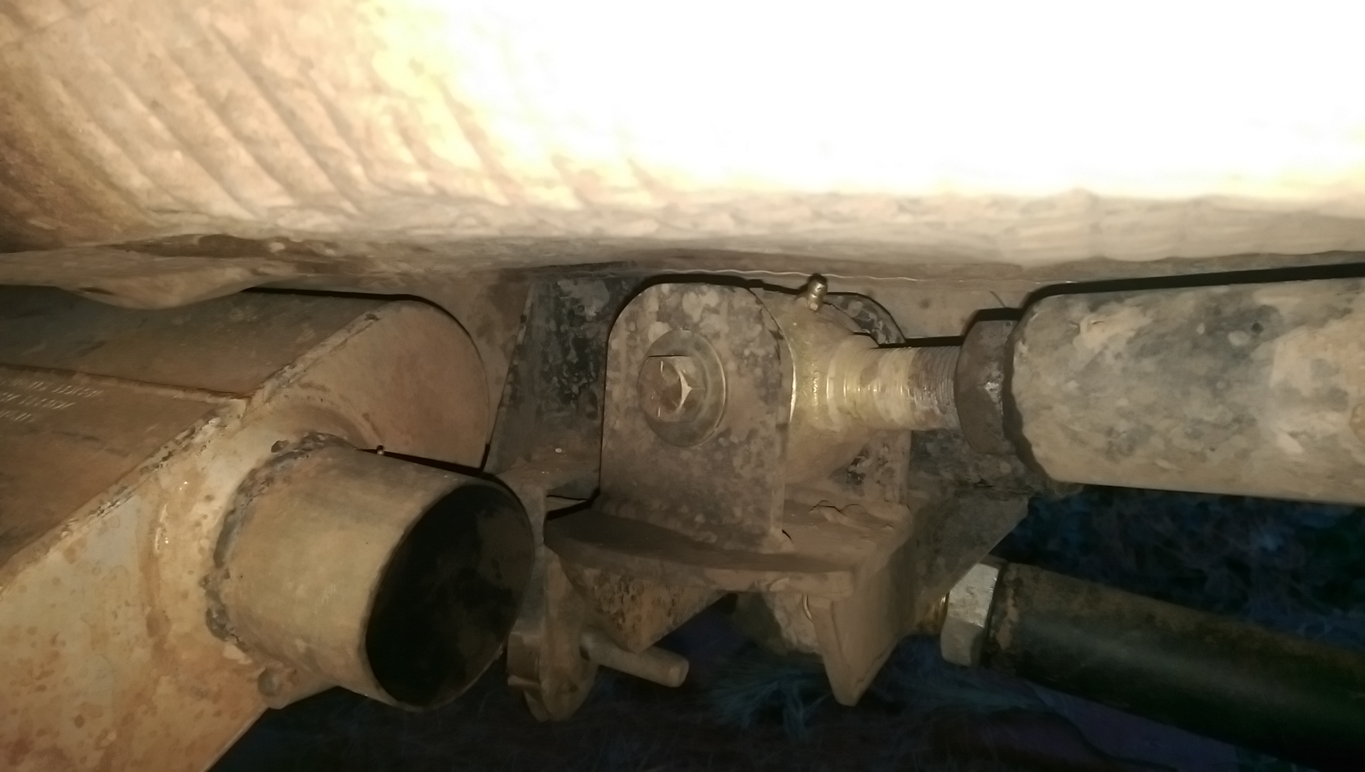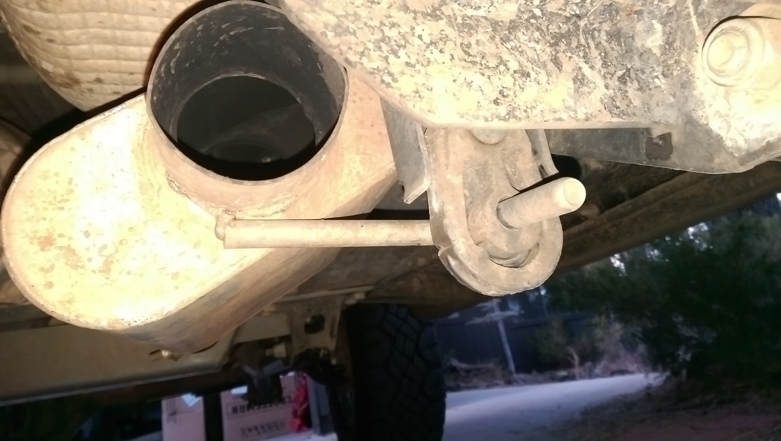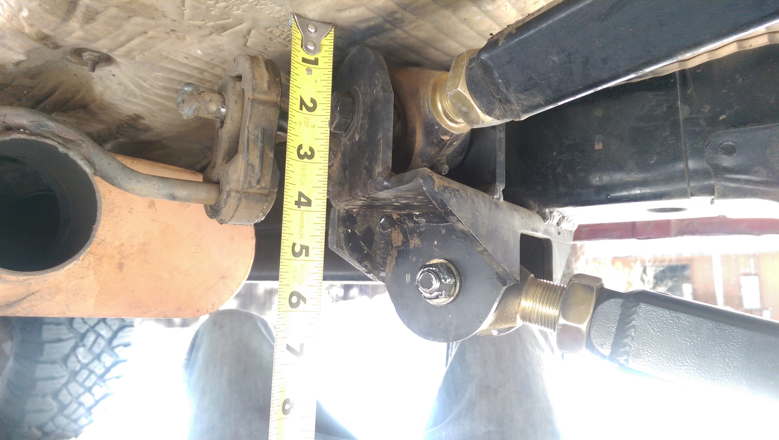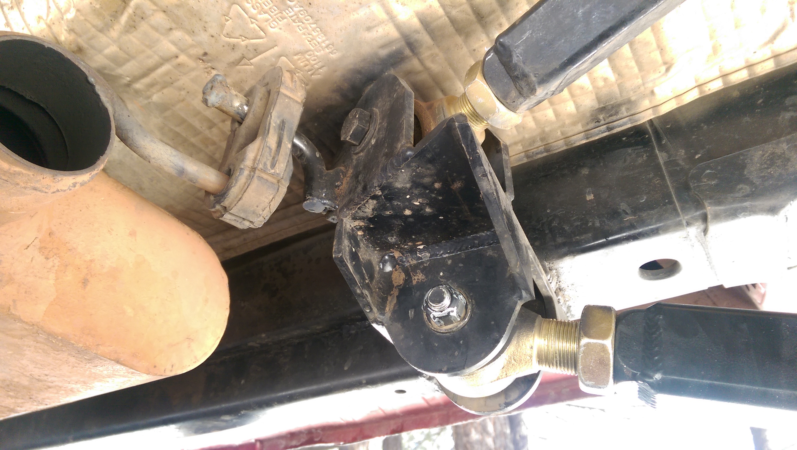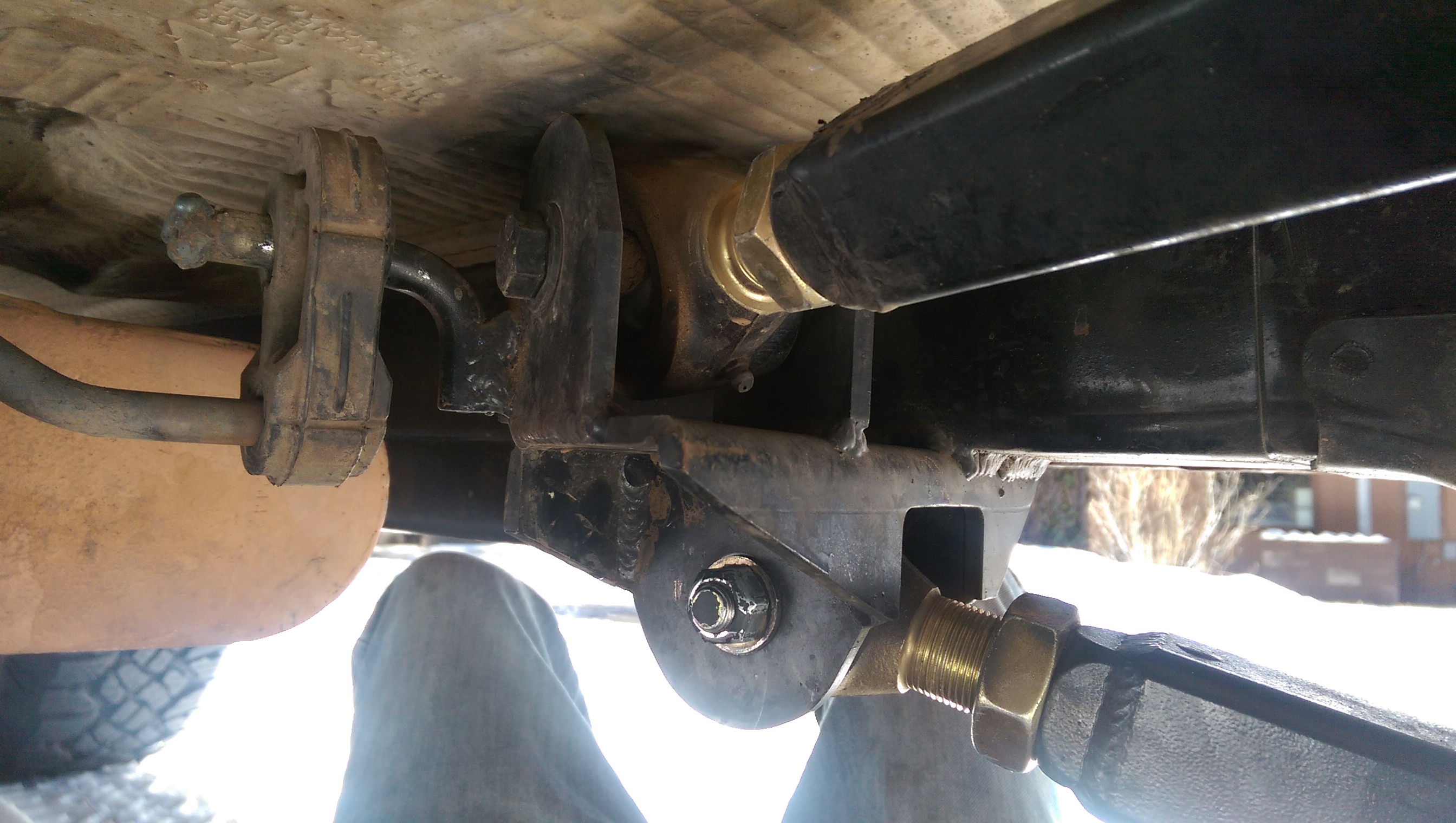 Up here you can see the bracket tacked to the Jeep, and the link with its tabs tacked to the bracket.