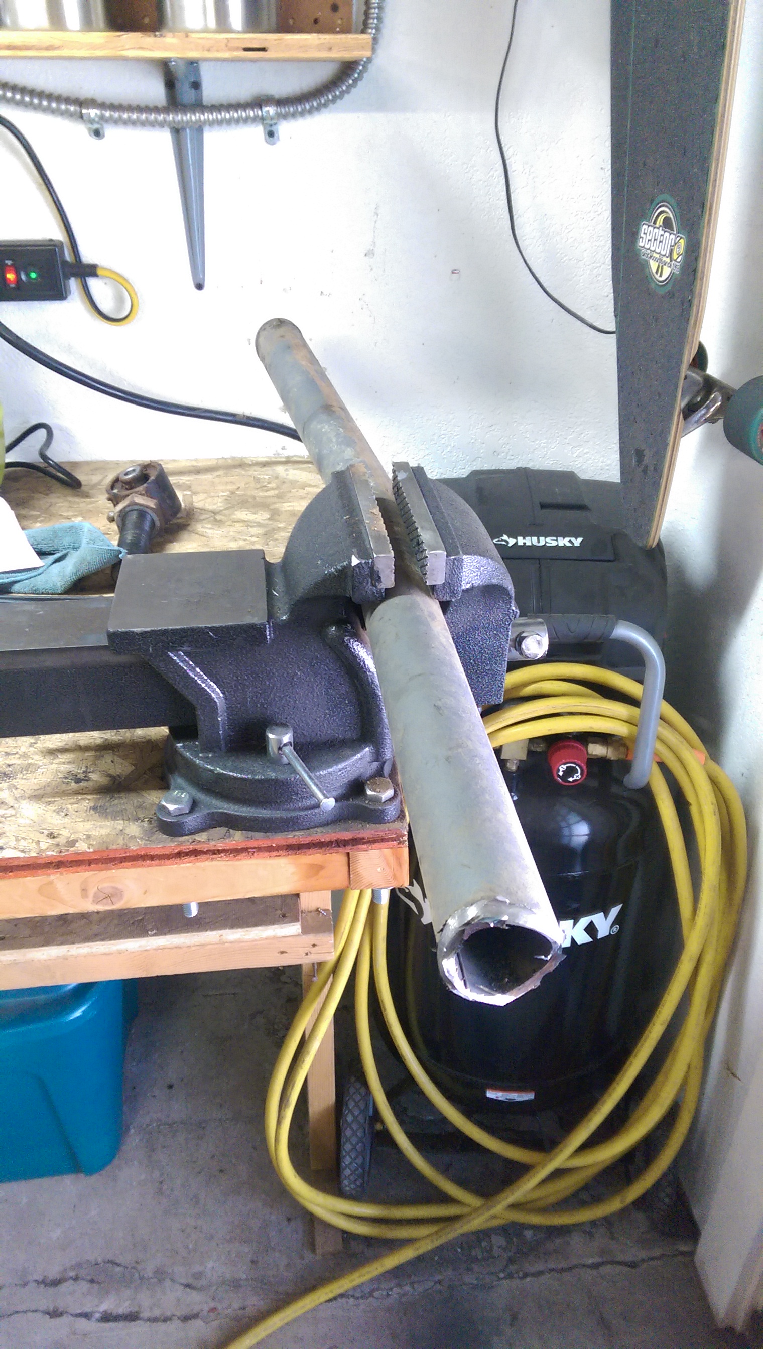 You can see where I had to start over a couple times above. I don’t have a dedicated circuit breaker for the welder yet, and 1/4″ is the max my welder can handle. This combination meant that I had to stop and start several times through the process. Future garage upgrade!