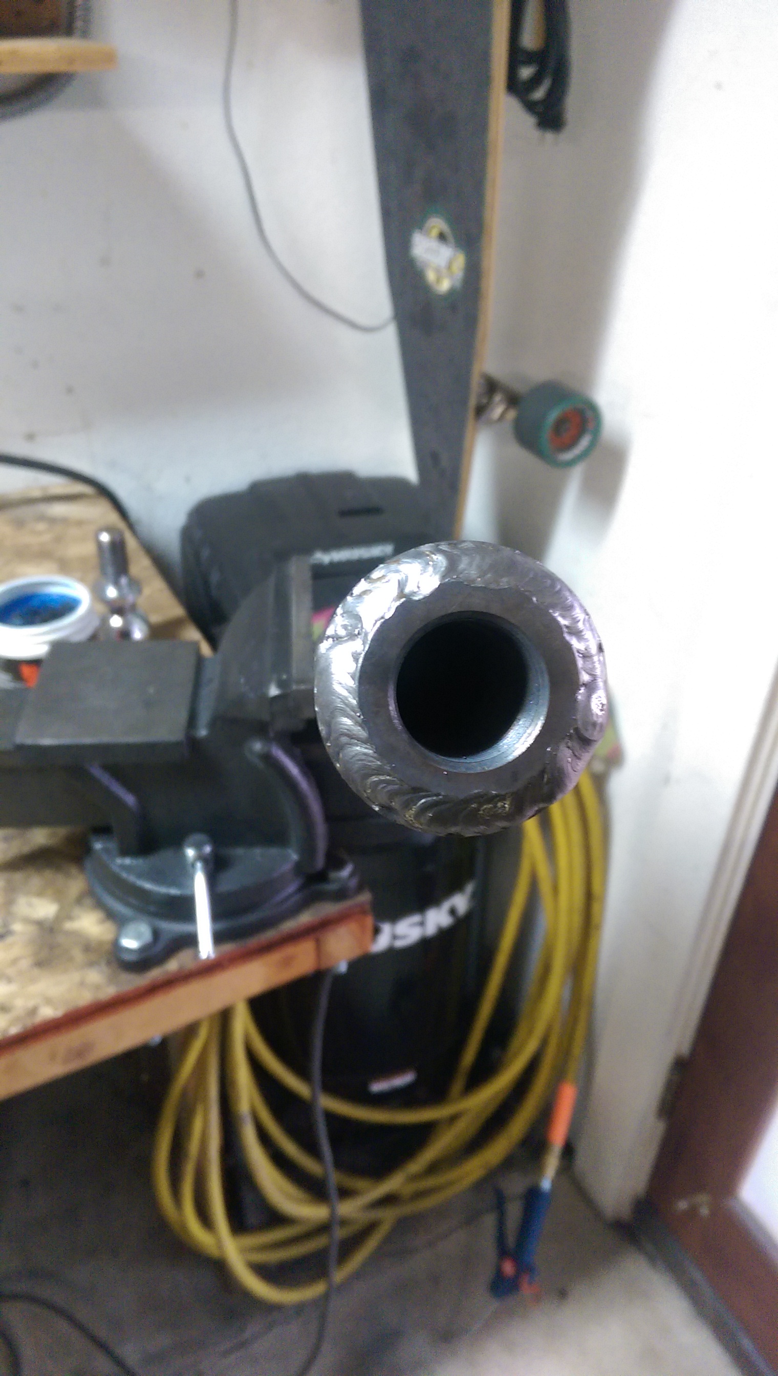This is why you need gas when MIG welding. It causes bubbles. This was my first pass of the day, and I just hit the power switch and did work. Not my best moment…