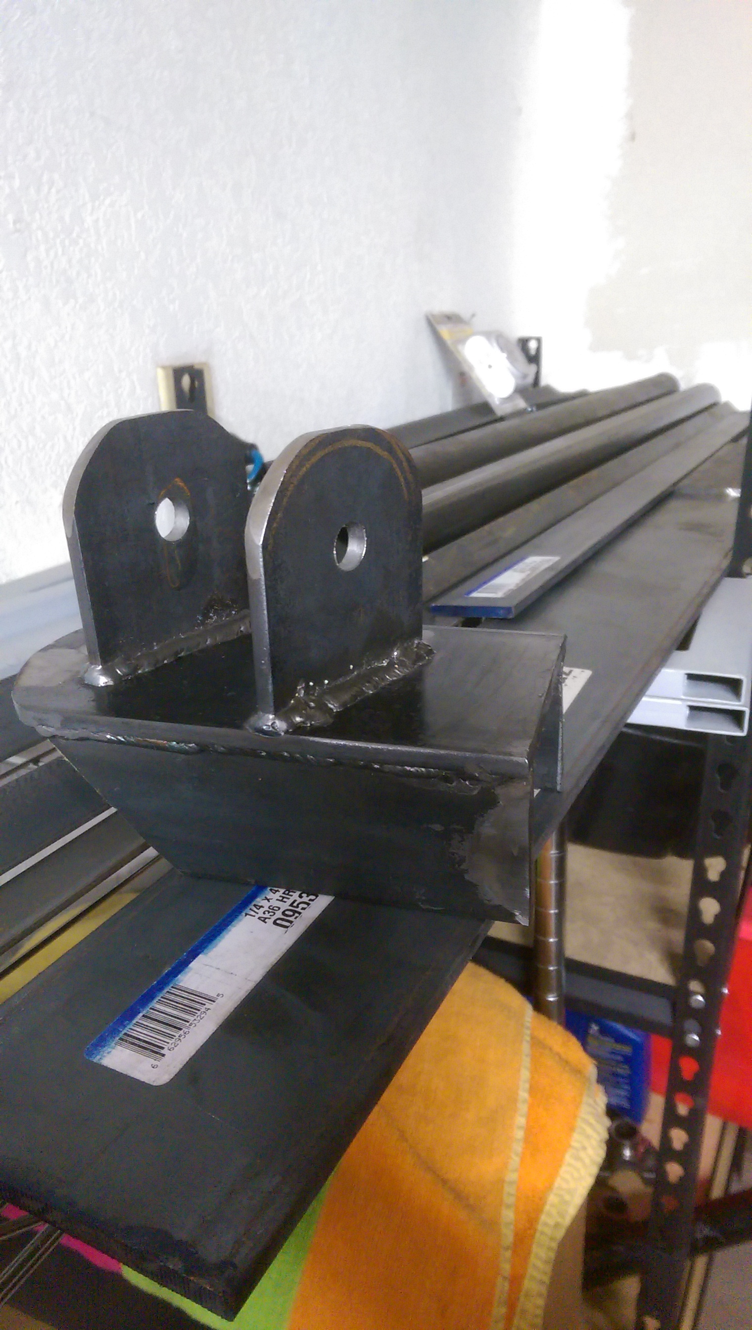 This is the plate and the gussets all welded up. A full bead on the outside (for looks) and three 1-1.5″ beads on the inside.