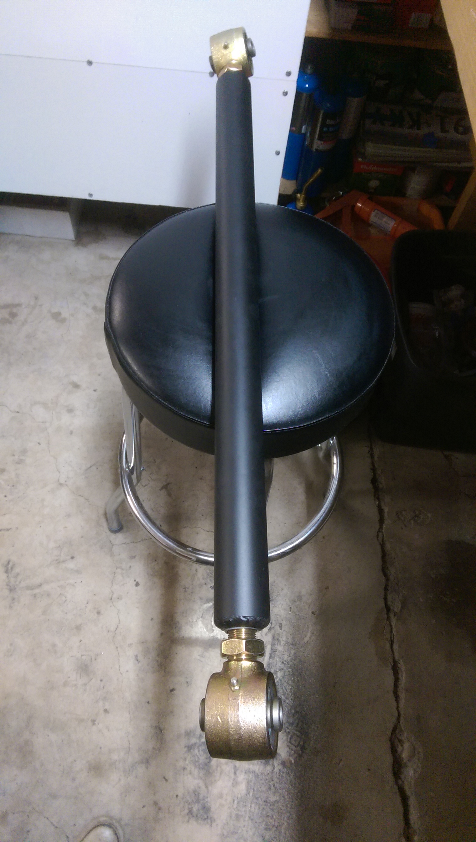 - Once that cooled, I put some fresh paint on it and installed the new Johnny Joint rod ends at the other end
