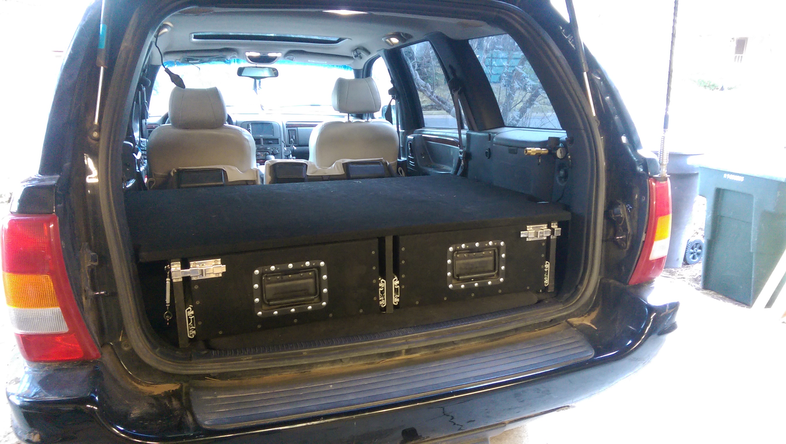 Still trying to figure out what to do with those stupid latches though. In my infinite intelligenceness, I decided to take the latches completely off, so now I get to hear the drawers clacking all about while I’m driving. yay.